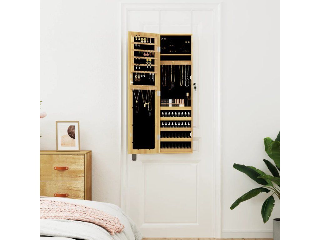 - Priestorovo úsporný dizajn: Zaveste zrkadlovú šperkovnicu na dvere pomocou priložených háčikov alebo ju pripevnite na stenu, aby ste ušetrili miesto na podlahe.