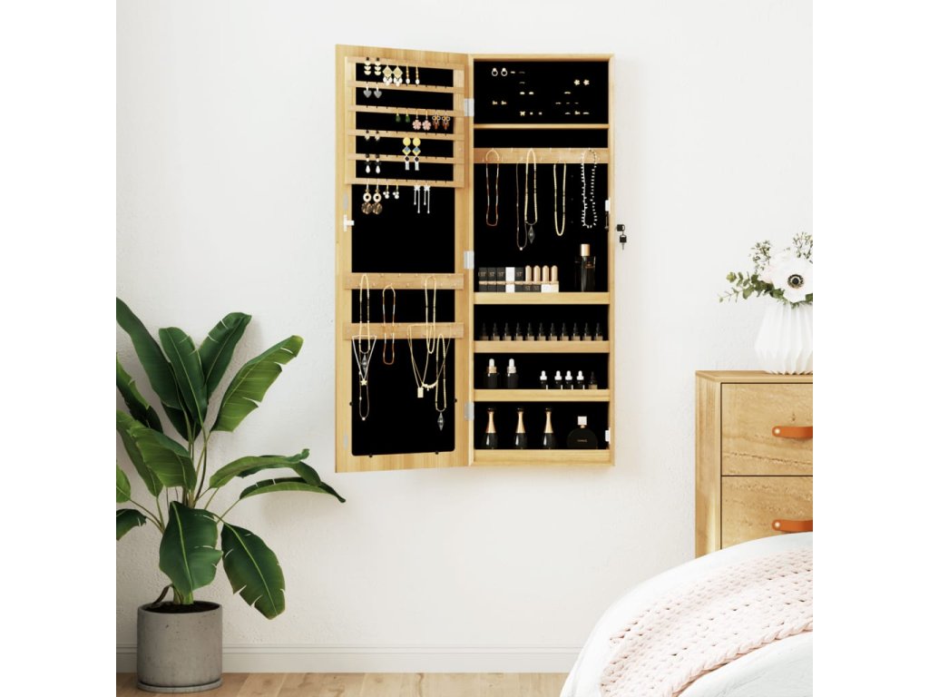 - Priestorovo úsporný dizajn: Zaveste zrkadlovú šperkovnicu na dvere pomocou priložených háčikov alebo ju pripevnite na stenu, aby ste ušetrili miesto na podlahe.