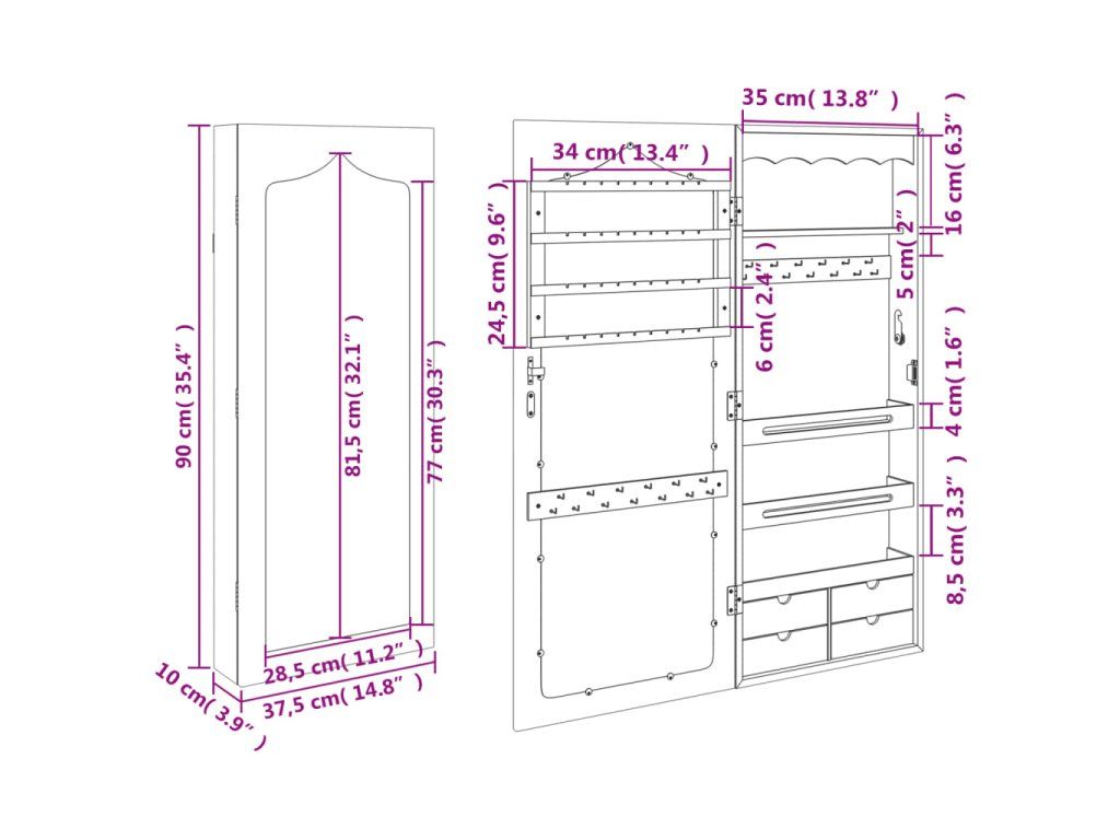 - Dostatok úložného priestoru: Odkladacie zrkadlo ponúka množstvo háčikov, vešiakov a políc, aby boli vaše šperky úhľadne usporiadané a na dosah ruky.
