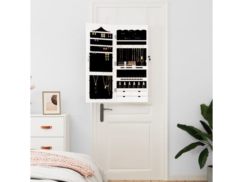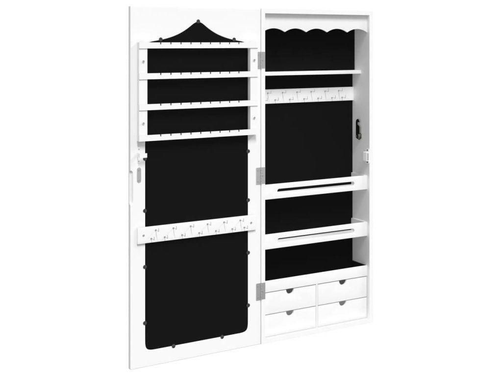 Multidom Zrkadlová skrinka na šperky nástenná biela 37,5x10x90 cm
