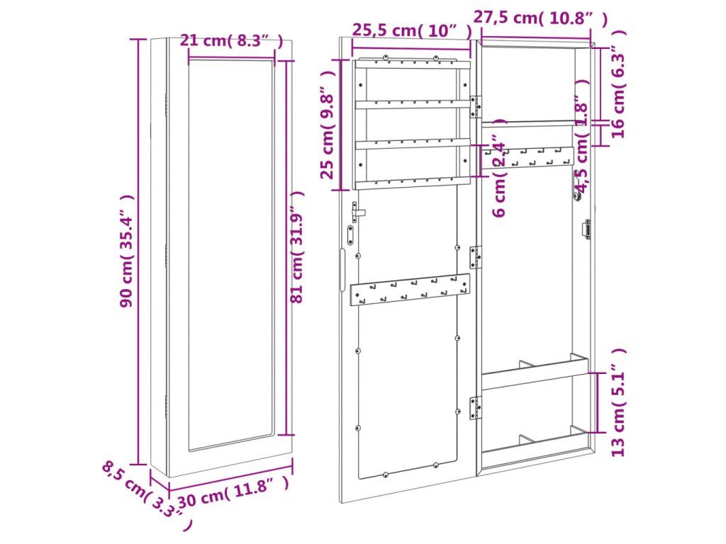 - Dostatok úložného priestoru: Odkladacie zrkadlo ponúka množstvo háčikov, vešiakov a políc, aby boli vaše šperky úhľadne usporiadané a na dosah ruky.