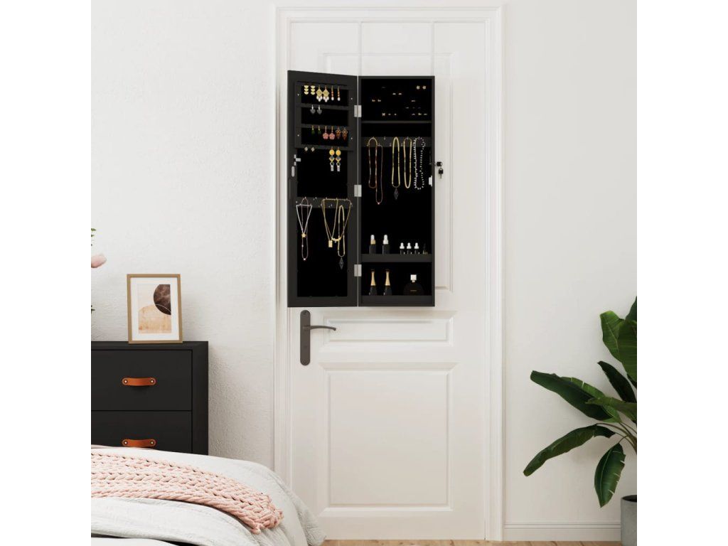 - Priestorovo úsporný dizajn: Zaveste zrkadlovú šperkovnicu na dvere pomocou priložených háčikov alebo ju pripevnite na stenu, aby ste ušetrili miesto na podlahe.