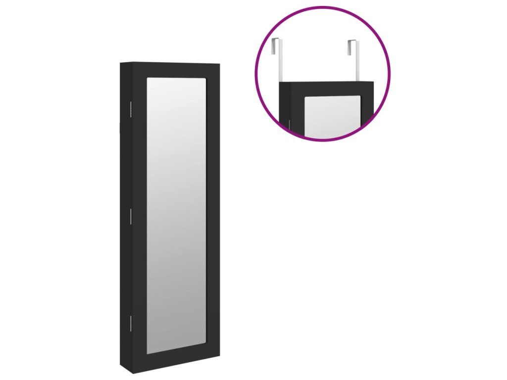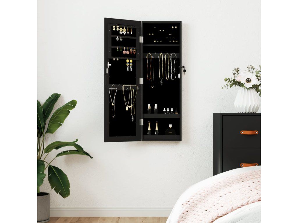 Multidom Zrkadlová skrinka na šperky nástenná čierna 30x8,5x90 cm
