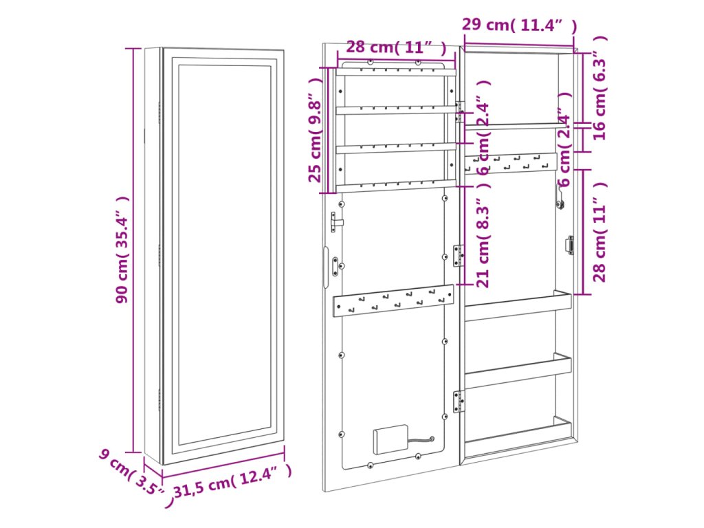 - Dostatok úložného priestoru: Odkladacie zrkadlo ponúka množstvo háčikov, vešiakov a políc, aby boli vaše šperky úhľadne usporiadané a na dosah ruky.