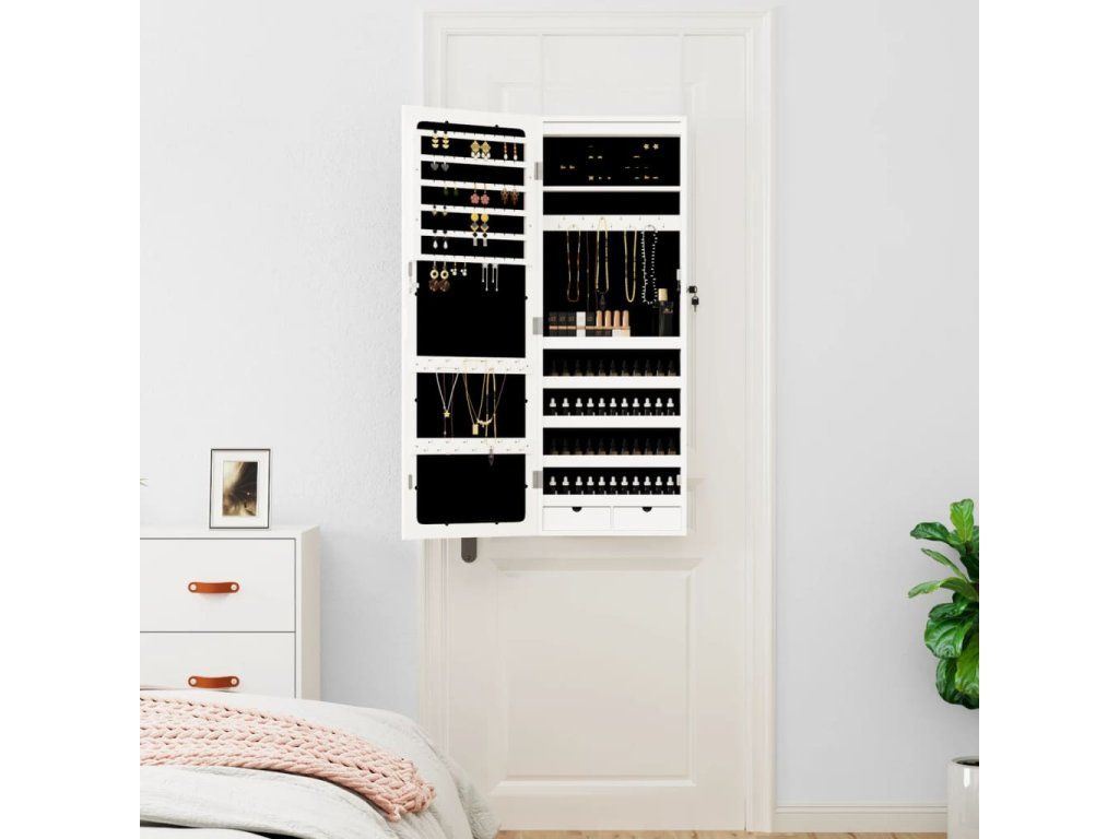 Multidom Zrkadlová skrinka na šperky s LED svetlami nástenná biela