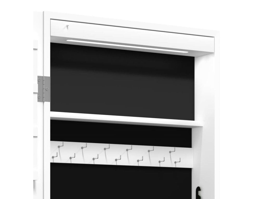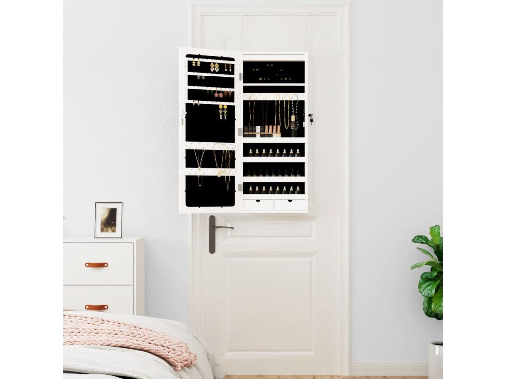 - Priestorovo úsporný dizajn: Zaveste zrkadlovú šperkovnicu na dvere pomocou priložených háčikov alebo ju pripevnite na stenu, aby ste ušetrili miesto na podlahe.