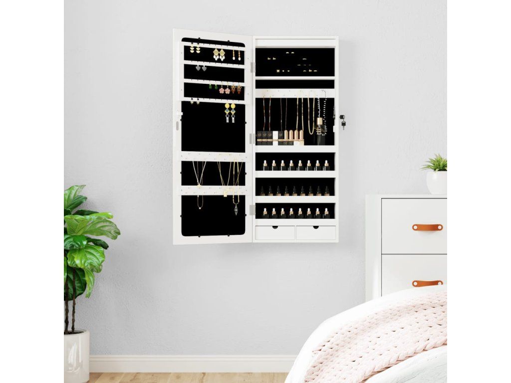 Multidom Zrkadlová skrinka na šperky s LED svetlami nástenná biela