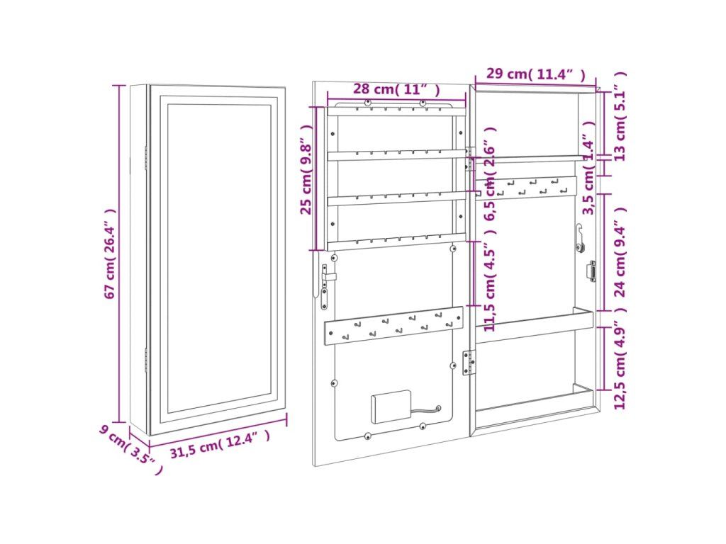 - Dostatok úložného priestoru: Odkladacie zrkadlo ponúka množstvo háčikov, vešiakov a políc, aby boli vaše šperky úhľadne usporiadané a na dosah ruky.