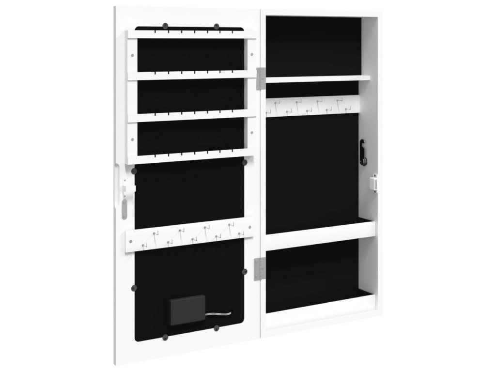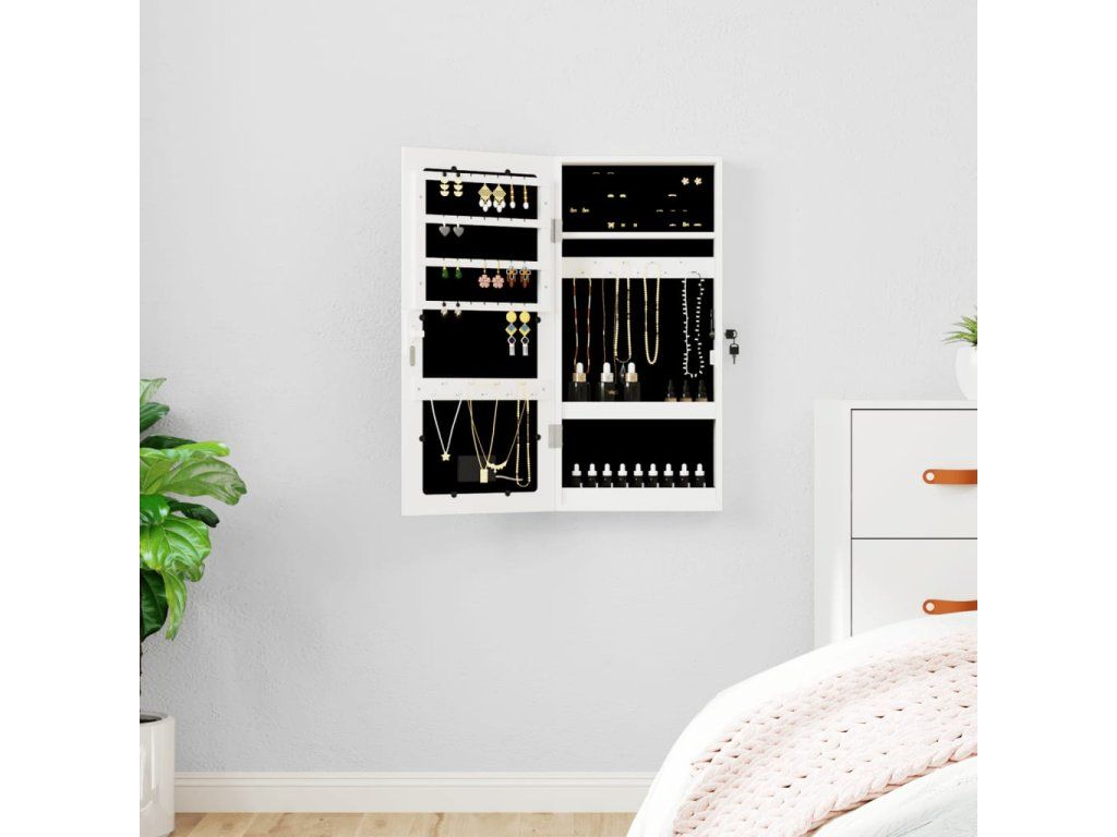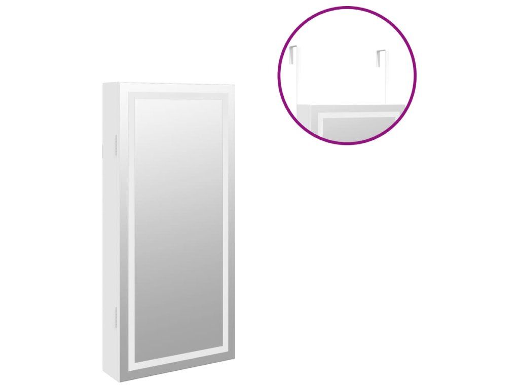Multidom Zrkadlová skrinka na šperky s LED svetlami nástenná biela