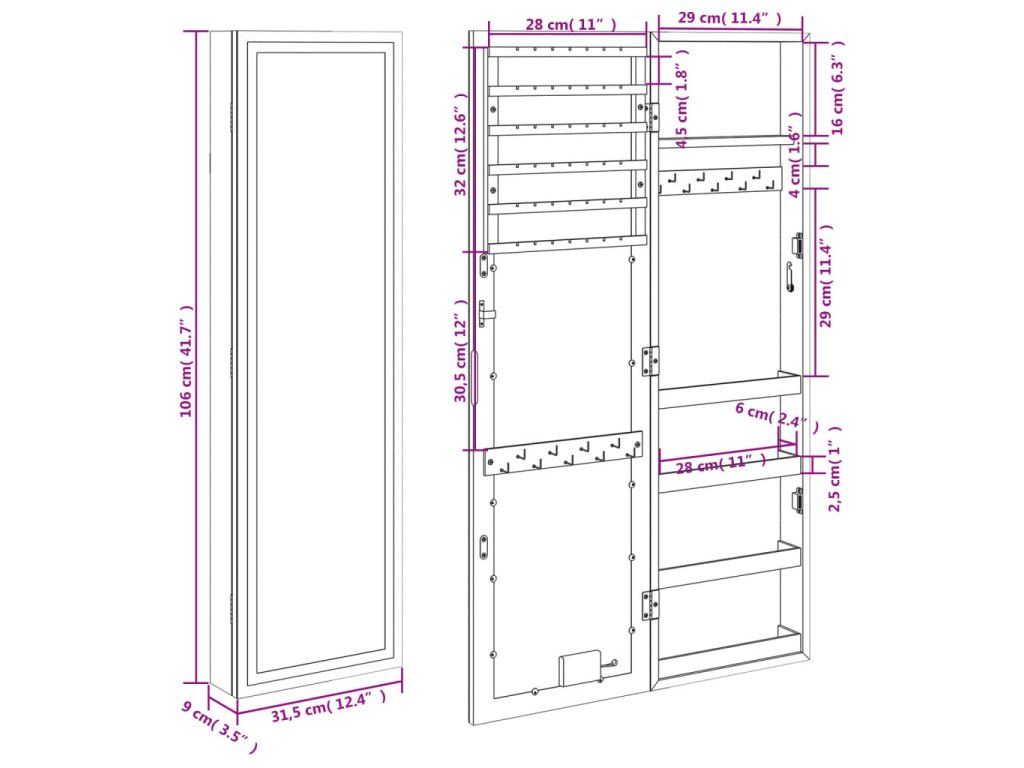 - Dostatok úložného priestoru: Odkladacie zrkadlo ponúka množstvo háčikov, vešiakov a políc, aby boli vaše šperky úhľadne usporiadané a na dosah ruky.