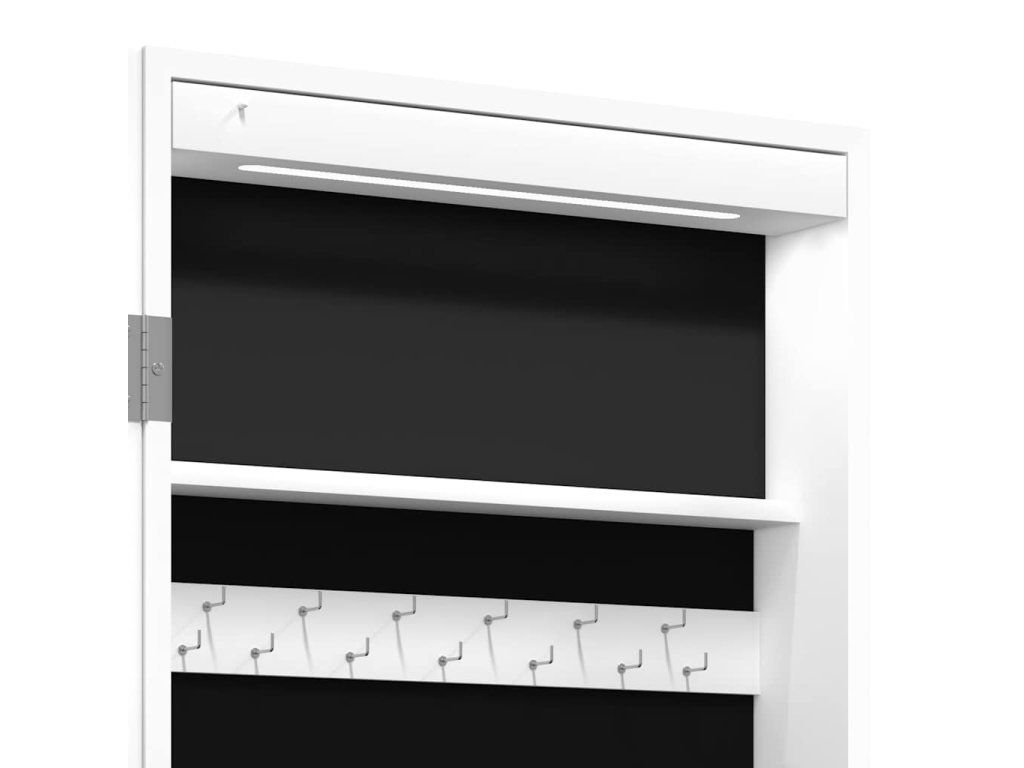 - Dostatok úložného priestoru: Odkladacie zrkadlo ponúka množstvo háčikov, vešiakov a políc, aby boli vaše šperky úhľadne usporiadané a na dosah ruky.
