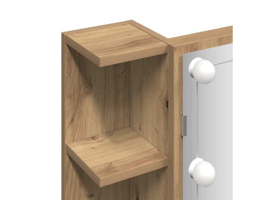 - Trvácny materiál: Kompozitné drevo je mimoriadne kvalitné s hladkým povrchom a vyznačuje sa pevnosťou, stabilitou a odolnosťou voči vlhkosti. LED zrkadlová skrinka je vyrobená zo spracovaného dreva a ľahko sa čistí.