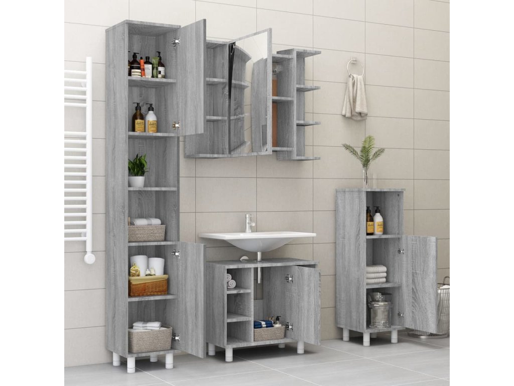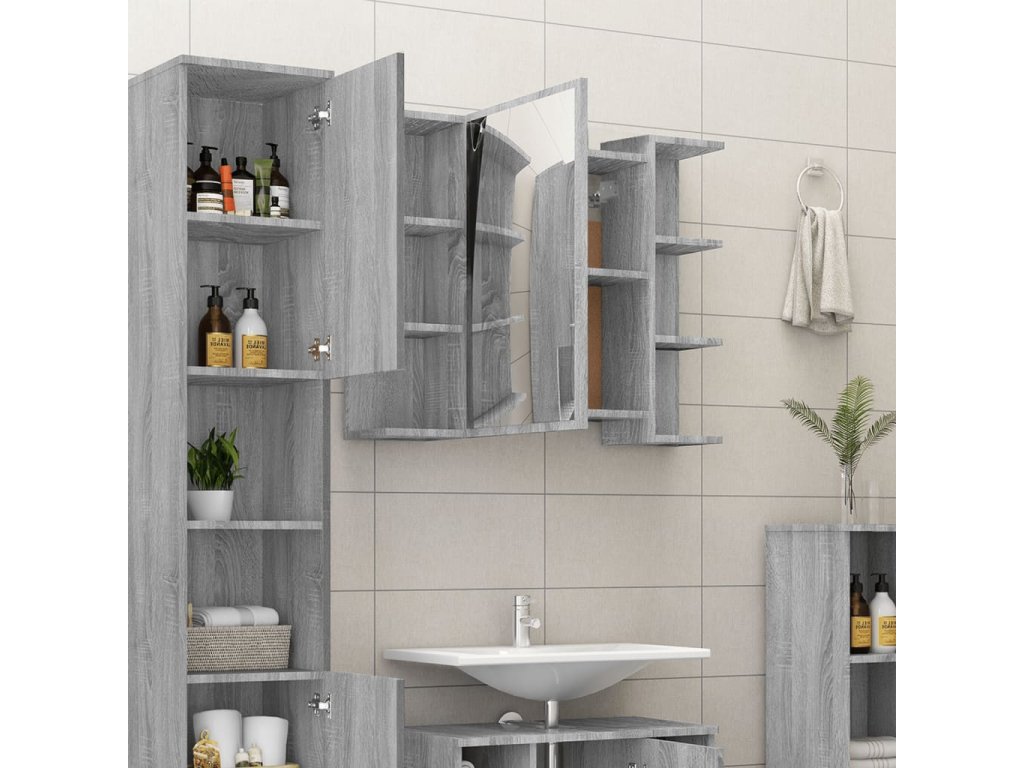 Multidom Zrkadlová skrinka sivá sonoma 80x20,5x64 cm spracované drevo