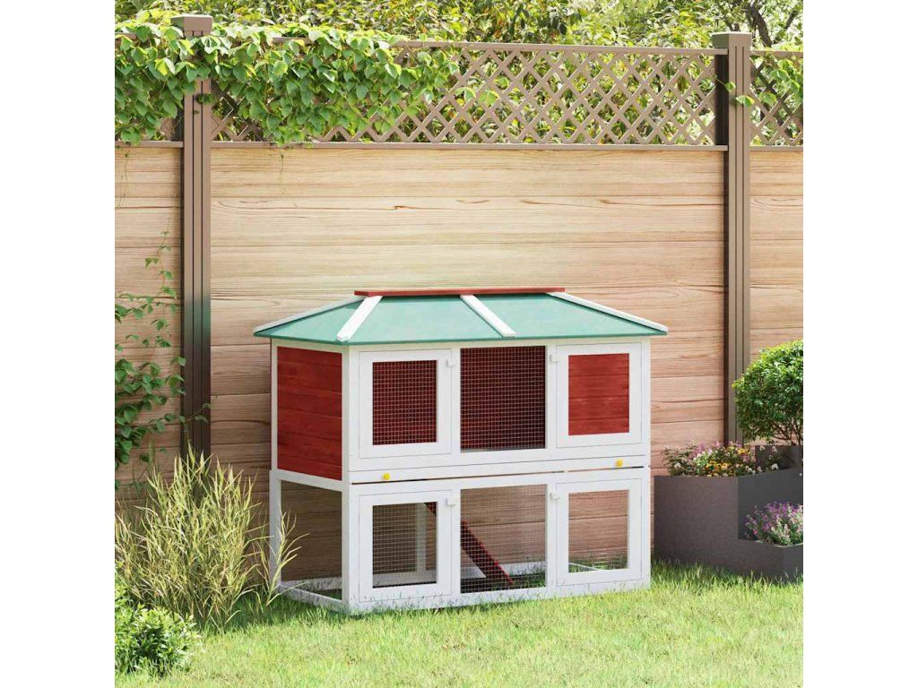 Multidom Zvieracia klietka/králikáreň, dvojposchodová, červená, drevo