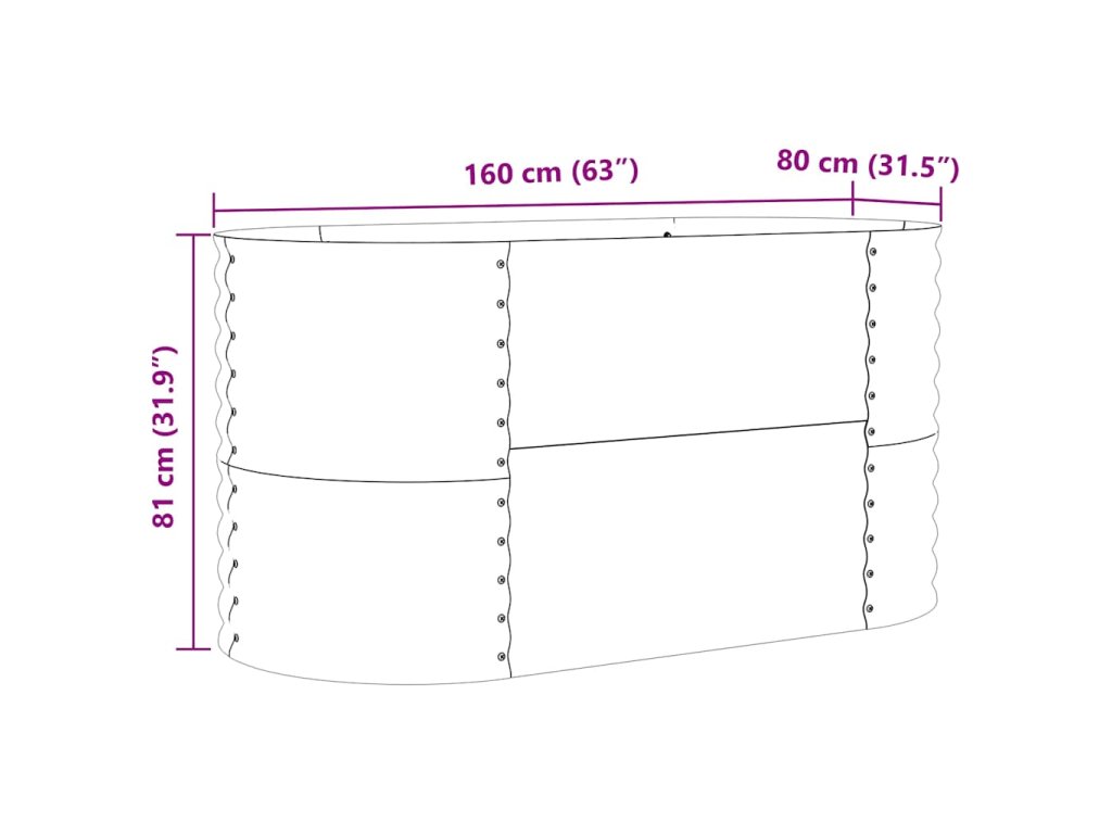 - Trvácna oceľová konštrukcia Tento záhon je postavený z ocele, čo zabezpečuje jeho dlhú životnosť a moderný štýl. Odolný materiál je zvolený pre svoju spoľahlivosť v exteriéroch, pričom zvláda aj rôzne poveternostné podmienky bez straty integrity.