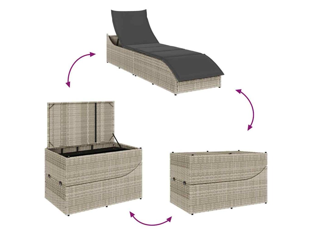 Multidomskladacie lehátko s vankúšom a úložným priestorom Svetlosivý