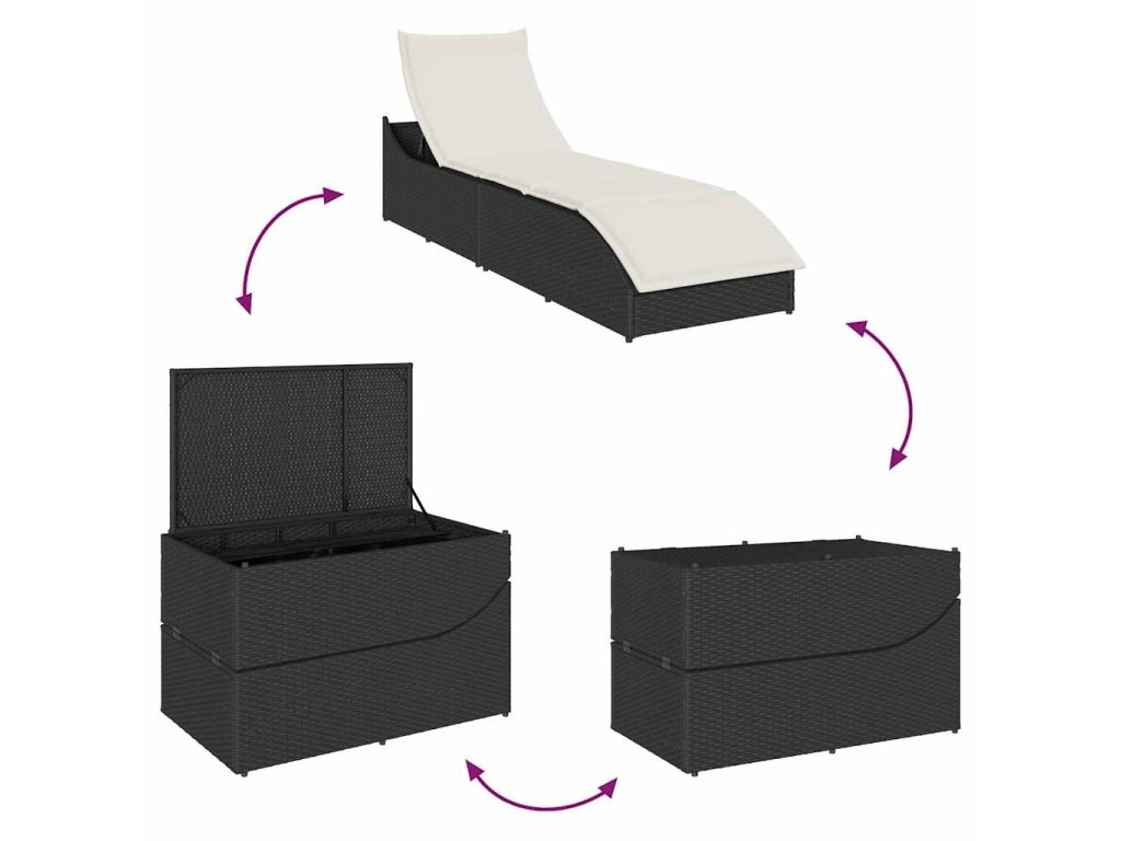 Multidomskladacie lehátko s vankúšom a úložným priestorom z čierneho