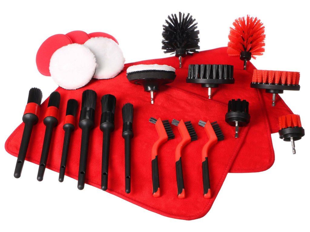 Všestranná sada čistících a mycích nástrojů CAR DETAILING 33 vám pomůže s kompletní údržbou povrchů interieru a exterieru vašeho vozu. Sada obsahuje detailní nylonové štětce na čištění špatně dostupných míst jako jsou záhyby ve dveřích a středovém panelu, leštící polštářky na vosk vaší karoserie, mycí houby a rukavice na mytí exterieru vašeho vozu, kartáče na vrtačku různých velikostí a tvrdostí pro čištění kovových částí, kartáč s omyvatelným a odnímatelným návlekem pro čištění ventilačních mřížek, unašeč na vrtačku s vlněnými leštícími polštářky a utěrky z mikrovlákna pro zachování lesku. Celá sada je uložena v praktické přenosné brašně na zip. Díky sadě CAR DETAILING bude váš vůz zářit čistotou.Hlavní výhody: