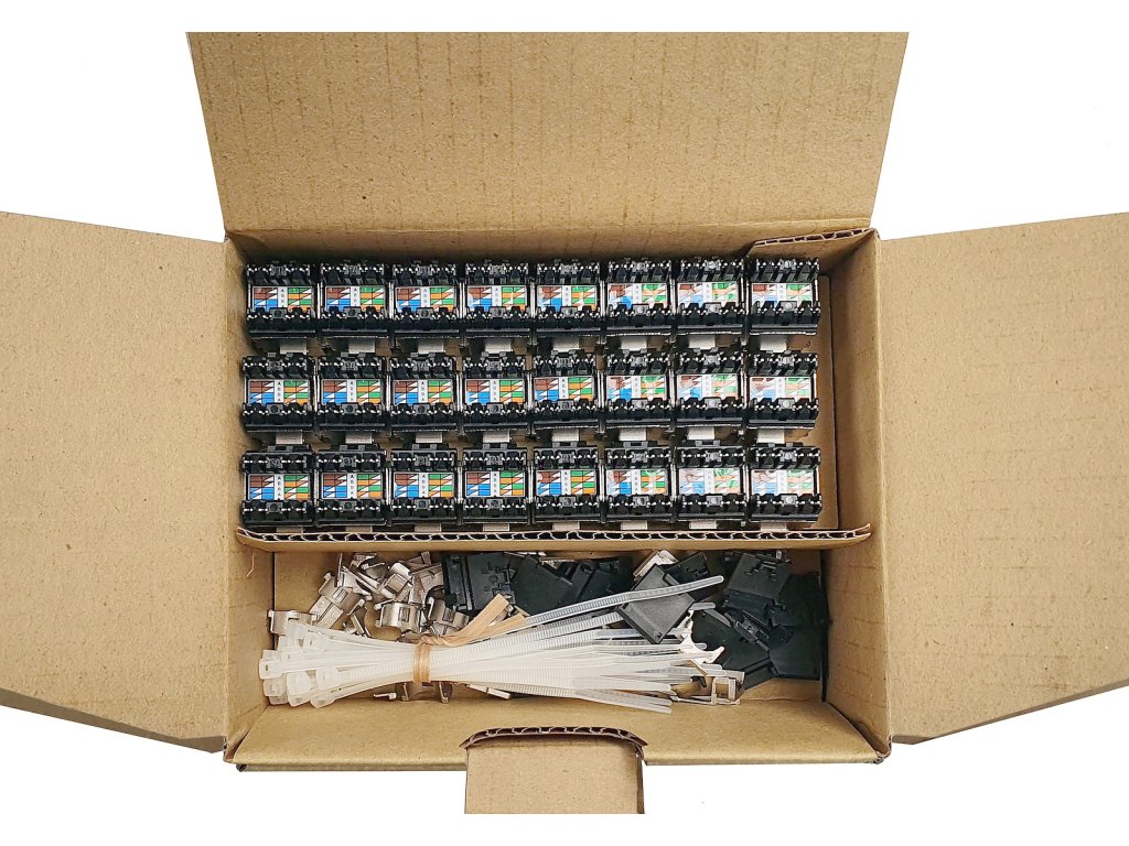 V tomto novém multipack balení jsou rychlozařezávací keystony Solarix k dispozici po 24 kusech, a to v recyklovatelném kartónovém boxu a bez plastových sáčků. Tento způsob balení je tedy mnohem šetrnější k životnímu prostředí (tj. místo v plastových obalech je 24 keystonů zabaleno v jednom recyklovatelném papírovém boxu) a rovněž toto balení umožní rychlejší dostupnost keystonů při instalaci (tj. není potřeba keystony vybalovat každý zvlášť).Keystony produktové řady Solarix – kategorie 6A s označením SXKJ-10G-STP-BK-NA jsou keystony, u kterých je důraz kladen především na rychlost a jednoduchost zařezání. Tyto keystony lze zařezat speciálními kleštěmi, které významně zkracují čas instalace. Keystony jsou dostupné ve stíněném provedení a bez problémů splňují požadavky definované v mezinárodních standardech ANSI/TIA 568, ISO/IEC 11801 a EN 50173 pro kategorii 6A a třídu vedení Class EA, včetně všech nejnovějších dodatků. Kleště s označením SXKJ-NA-BU je nutné dokoupit zvlášť a lze je použít pouze na tento typ keystonů (tj. SXKJ-xx-yyy-BK-NA). Stejně jako všechny komponenty v produktové skupině Solarix – kategorie 6A jsou i tyto rychlozařezávací keystony vyrobeny tak, aby poskytovaly maximální životnost, vynikající výkon, spolehlivost a především jednoduchou instalaci. Díky svým kompaktním rozměrům jsou tyto rychlozařezávací keystony kompatibilní s modulárními zásuvkami většiny výrobců (např. ABB, Schneider, Legrand, Moeller, Hager, Obzor atd.). Tuto kompatibilitu si můžete ověřit v naší tabulce kompatibility keystonů Solarix.