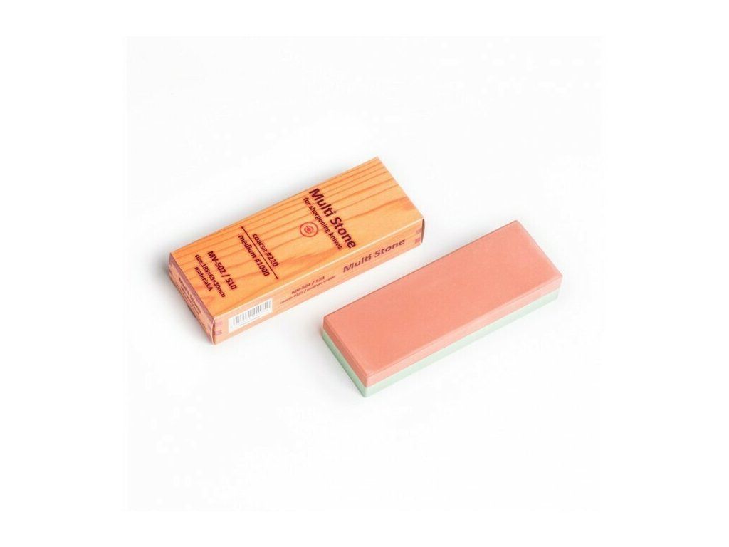 Multi Stone je novou cenovo dostupnú radom kombinovaných brúsnych kameňov od japonskej firmy Naniwa. Abrazivom je korund, teda oxid hlinitý. Kamene majú relatívne pevnú väzbu oproti iným lacným kameňom a môžete od nich očakávať veľmi dobrú životnosť. Celkom určite sa jedná o brúsne kamene s najlepším pomerom cena / výkon naprieč celým naším sortimentom. Vrelo odporúčame túto sériu kameňov všetkým začiatočníkom v oblasti brúsenie nožov. Vyrobené vo Vietname pod dohľadom japonského výrobcu Naniwa.