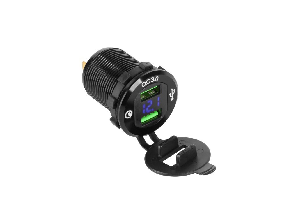 Nabíjačka do auta 2xUSB Quick charge s voltmetrom panelová PeiyingTyp: Montážna