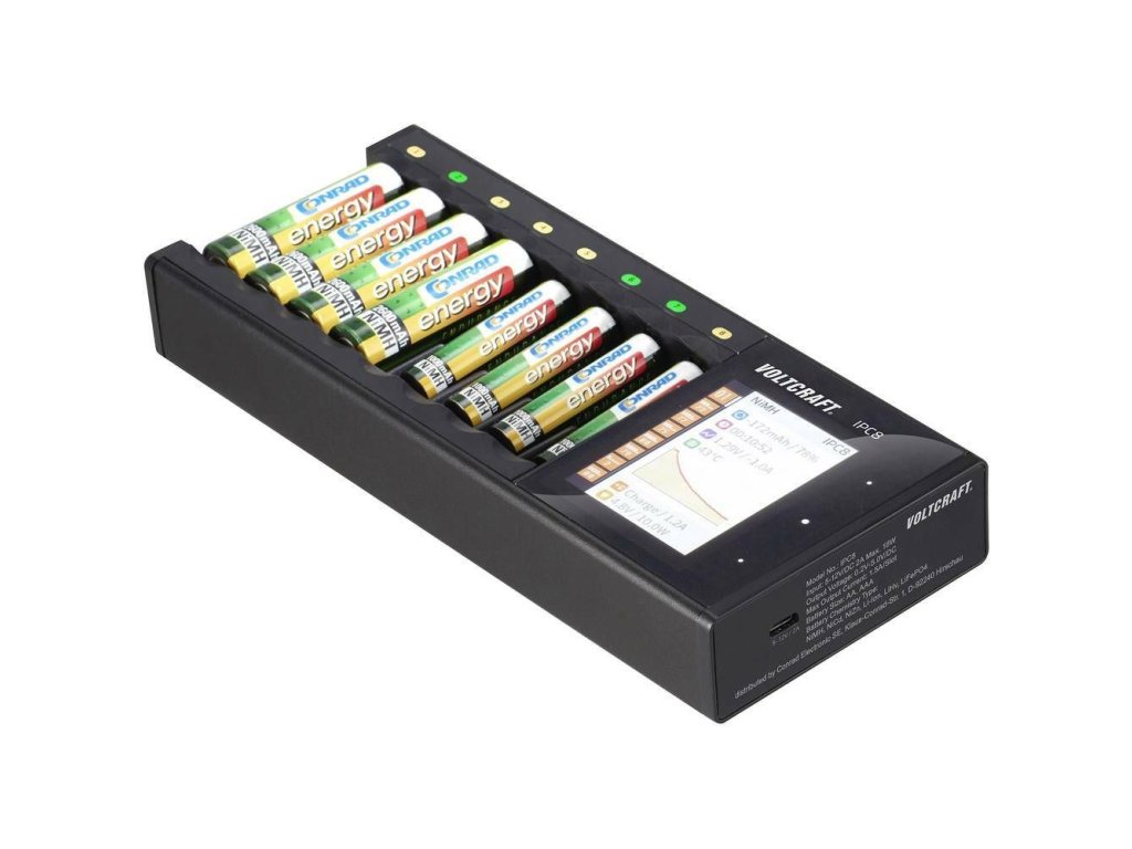 Inovativní a inteligentní nabíječka pro 1 - 8 akumulátorů AA nebo AAA. Nabíječka IPC-8 může nabíjet, vybíjet, analyzovat a aktivovat akumulátory NiMH, NiCd, Li-Ion, LiHV a LiFePo. Funkce analýzy je určena pro akumulátory, které nebyly používány déle než 2 týdny nebo mají špatný vybíjecí výkon. Taktéž lze s tímto programem určit kapacitu akumulátoru nebo její snížení. Režim aktivace se používá pro hluboko vybité akumulátory. Za pomoci nízkého proudu a nabíjecího/vybíjecího cyklu se snaží znovu aktivovat akumulátor. Obsluha je velmi snadná a přehledná. IPC-8 lze provozovat v automatickém režimu nebo i v manuálním režimu, kdy lze nastavit všechny parametry nabíjení. Inovativní IPS displej umožňuje přehledné, barevné zobrazení všech parametrů a současné zobrazení nabíjecí křivky. Díky USB vstupu lze nabíječku provozovat na libovolné USB zásuvce nebo pomocí powerbanky i na cestách.Speciální funkce: