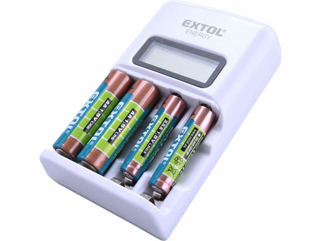 Nabíječka baterií AAA/AA, NiMh/NiCd, 4 sloty, individuální nabíjení, LCD EXTOL-ENERGY