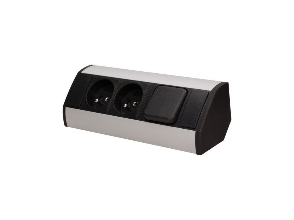Nábytková zásuvka s vypínačom ORNO OR-GM-9002/BG, rohové púzdro, farba čierno-strieborná