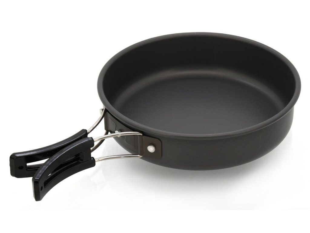 Sada je tvořena pánvičkou 18 x 4 cm, kotlíkem 17 x 9 cm, konvicí 15 x 7,5 cm a víkem průměru 17 cm. Veškeré vybavení je opatřeno sklápěcím držákem, zakončený plastovou rukojetí pro usnadněnou manipulaci.