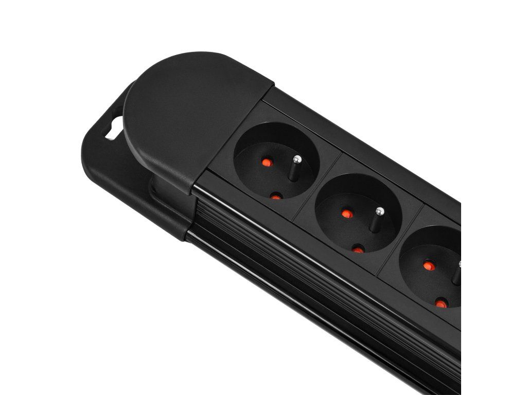 Zásuvková lišta má ochranu proti zasunutiu prstom alebo predčasnému zapnutiu deťmi. Špeciálne zárezy a otvor umožňujú jednoduchú montáž lišty na stenu.
