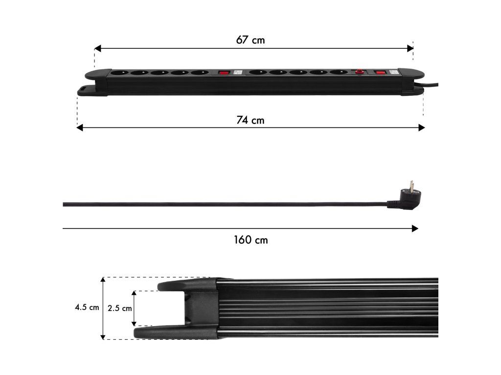 Vysokokvalitná napájacia lišta s až 10 zásuvkami rozloženými na 2 vypínače (2x5 zásuviek). Skvelé riešenie pre kanceláriu, dielňu, garáž, akúkoľvek domácnosť.