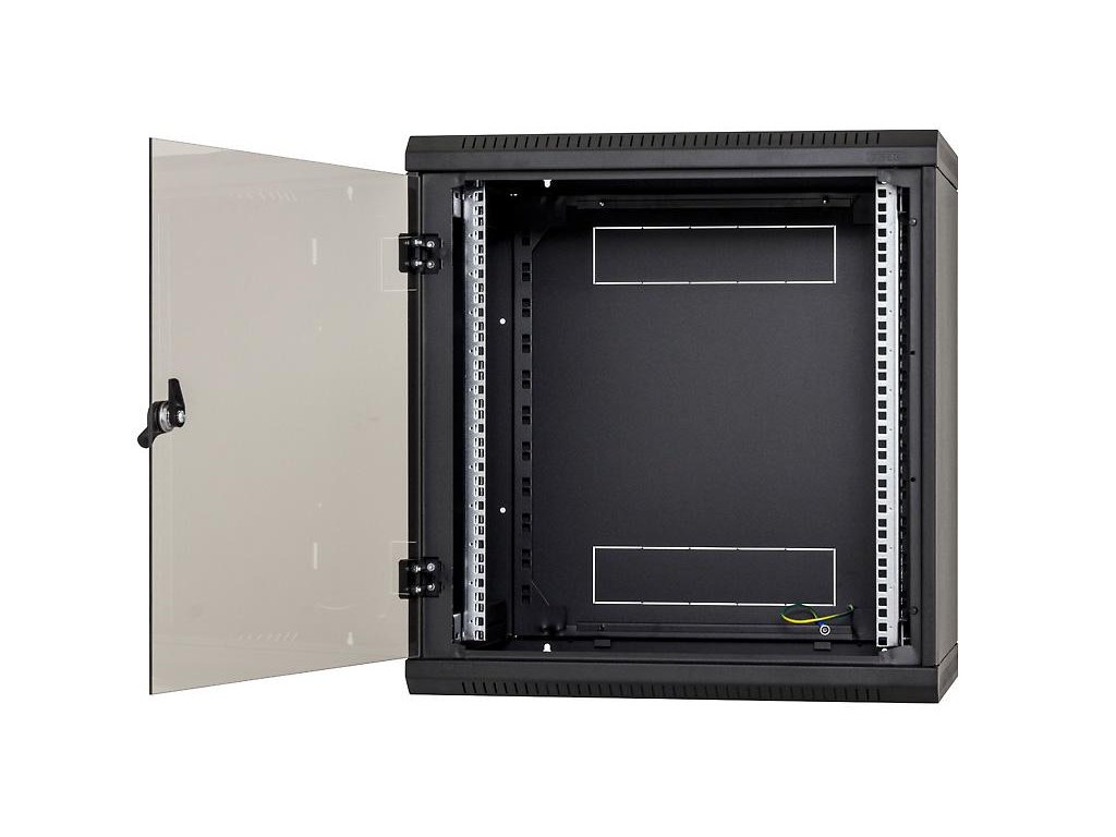 Nástenný rack jednodielny 12U (š)600x(h)595 perforované dvere čierny