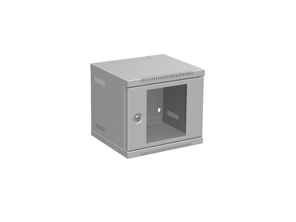 10" nástěnné rozvaděče jsou určeny pro instalaci prvků strukturované kabeláže malého rozsahu. Do standardní výbavy tohoto typu rozvaděče patří přední 10“ vertikální lišty, skleněné dveře se zámkem, perforovaný skelet pro lepší odvětrávání a kabelové prostupy ve spodní, horní i zadní části. Rozvaděč je symetrický a jednoduchým otočením lze dosáhnout pravého, nebo levého otevírání dveří. Dveře je pak možné dodat v provedení celoplechovém, nebo perforovaném. Standartní barevné provedení rozvaděče je šedá RAL 7035.• nýtovaný skelet s perforací