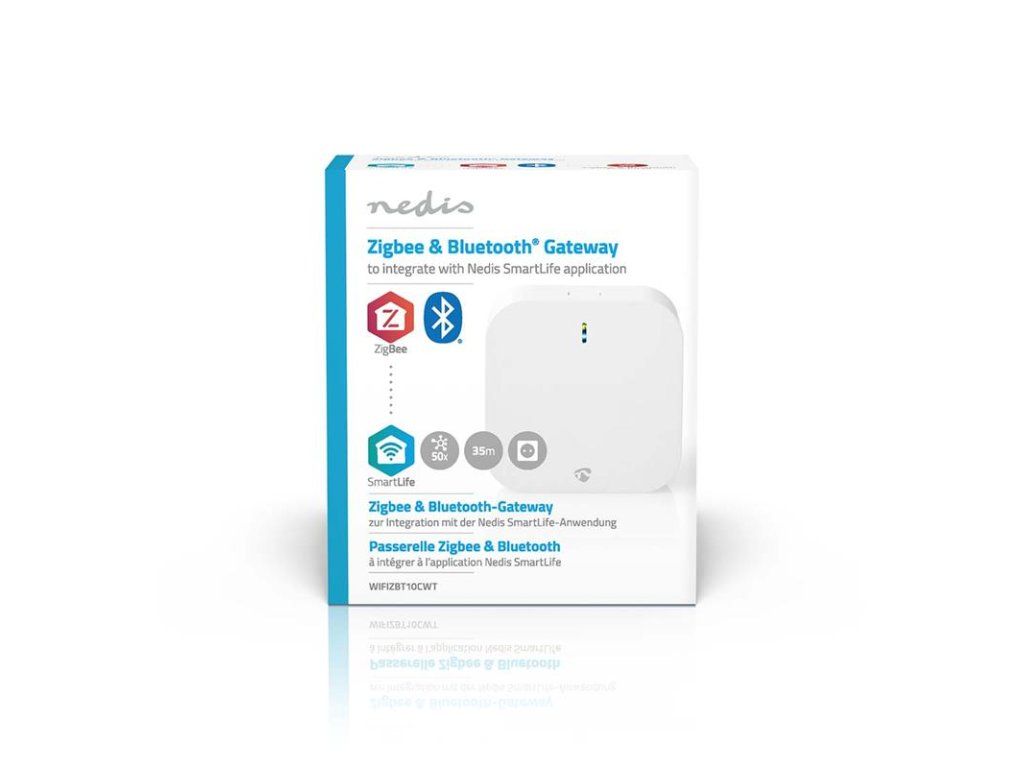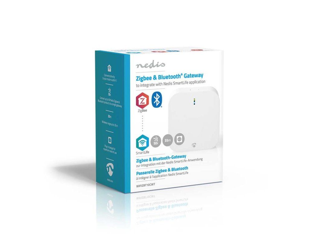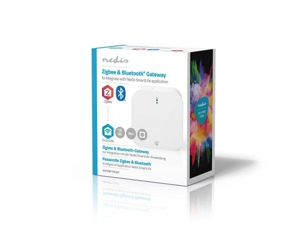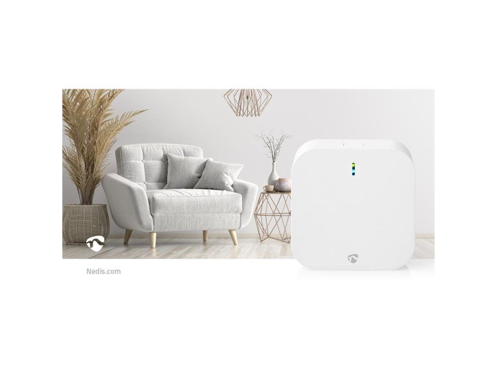 ZigBee brábrása pripája k Wi-Fi síti, takže nie je potrebný ethernetový kábel. Stačí ho nainštalovať do aplikácie Nedis® SmartLife a budete môcť pripojiť až 50 produktov Nedis® Zigbee prostredníctvom jediného