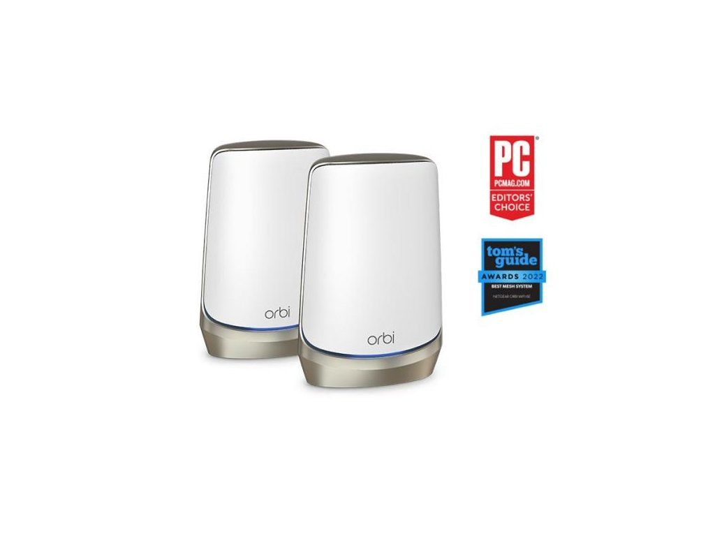 NETGEAR Orbi™ AXE11000 Mesh WiFi systém (router + satelit) vysoce výkonná Wi-Fi pro celou domácnost s rychlostí až 10,8Gb/s * Quad-Band & Dedicated Backhaul WiFi zajišťuje maximální rychlost až pro 200 připojených zařízení * WiFi 6E otevírá nové 6GHz pásmo a poskytuje vyhrazené nejvyšší rychlosti nejnovějším notebookům, telefonům a tabletům s podporou WiFi 6E * MU-MIMO schopné simultánního streamování dat * patentovaný design antény zvyšuje pokrytí WiFi a poskytuje vysoce výkonné WiFi v celém vašem domě Technologie WiFi: WiFi 6E (IEEE 802.11ax) Quad-Band WiFi (AXE11000) Rychlost WiFi: 10,8Gb/s (1,2+2,4+2,4+4,8Gb/s) WiFi pásma: * Radio 1: podpora IEEE ® 802.11b/g/n/ax/2,4GHz – 1024 QAM * Radio 2: podpora IEEE ® 802.11a/n/ac/ax/5GHz – 1024 QAM * Radio 3: podpora IEEE ® 802.11a/n/ac/ax/5GHz – 1024 QAM * Radio 4: podpora IEEE ® 802.11a/n/ac/ax 6GHz – 1024-QAM Celkový dosah WiFi: cca 555m2 Router: * dosah WiFi cca 278m2 * rychlost 1200+2400+2400+4800Mb/s * paměť 512MB NAND Flash a 1GB RAM * procesor 4C, 2,2Ghz * 12x interní anténa se zesilovačem * 1x 10Gbps multigigabitový ethernetový WAN port * 1x 2,5Gbps multigigabit ethernet LAN port * 3x 10/100/1000Mbps gigabit ethernet LAN port * 1x napájecí konektor Satelit: * dosah WiFi cca 278m2 * rychlost 1200+2400+2400+4800Mb/s * paměť 512MB NAND Flash a 1GB RAM * procesor 4C, 2,2Ghz * 12x interní anténa se zesilovačem * 1x 2,5Gbps multigigabit ethernet LAN port * 3x 10/100/1000Mbps gigabit ethernet LAN port * 1x napájecí konektor Zabezpečení: * zabezpečení WiFi založené na standardech (802.11i, 128bitové šifrování AES s PSK) * podporuje WPA3 WiFi Security protokol * Guest WiFi Network - snadné nastavení samostatného a zabezpečeného přístupu k internetu pro hosty * NETGEAR Armor™ - internetové zabezpečení pro váš domov s automatickou ochranou, aktualizacemi a výstrahami, které monitorují a pomáhají chránit všechna připojená zařízení před hackery a krádeží dat * NETGEAR Smart Parental Controls™ - spravujte čas a dostupnost svých dětí online na připojených zařízeních Rozměry: 279,4x190,5x83,8mm Hmotnost (každé): 1,36kg Obsah balení: * Orbi WiFi 6E router (RBRE960) * Orbi WiFi 6E satelit (RBSE960) * ethernetový kabel (2m) * návod * 2x napájecí adaptér (19V/3,16A)Dodatočné parametre
