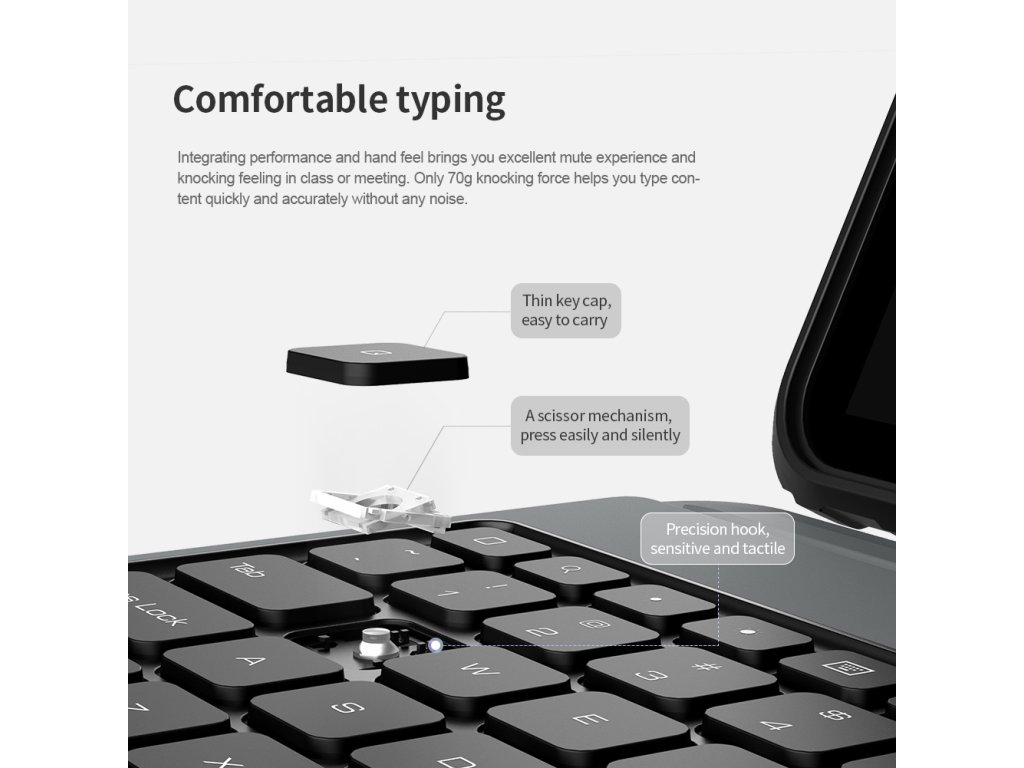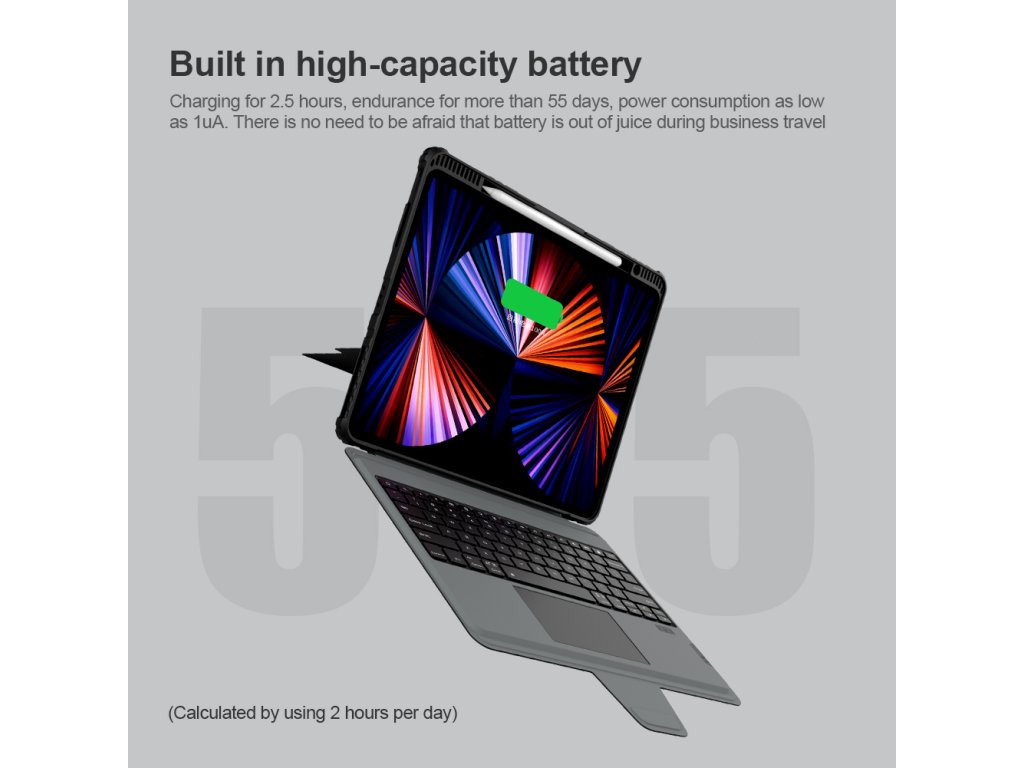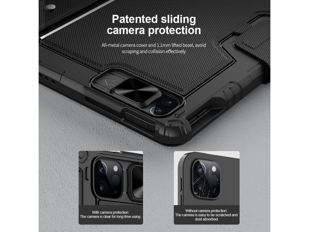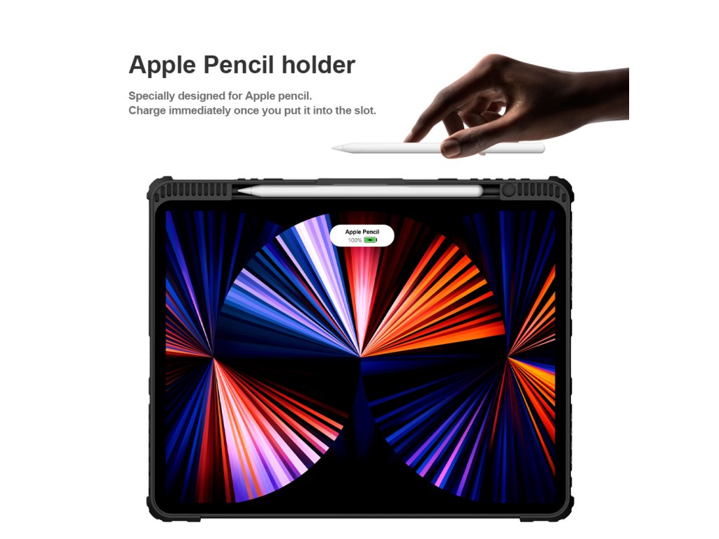 Popis produktu: Nillkin Bumper Combo Keyboard Case je víceúčelový ochranný kryt tabletu s klávesnicí, slotem pro Apple Pencil s automatickým nabíjením a plynule nastavitelným úhlem tabletu. Chcete svůj tablet využívat jako mobilní kancelář, nebo jako náhradu za těžký notebook, nebo Vás prostě jen tablet baví, tak přesně pro Vás je zde ochranný kryt Nillkin Bumper Combo. Kryt Vám nabídne špičkově zpracovanou bezdrátovou klávesnici s nízkým zdvihem, tichými a odolnými spínači a precizní profilací kláves pro to nejpohodlnější psaní. Kryt má integrovaný slot s nabíjením přímo pro Apple Pencil. Můžete ho tak mít vždy s sebou a co je hlavní, bude vždy plně nabitý. O nabíjení právě Apple Pencil a napájení bezdrátové klávesnice se stará vysokokapacitní baterie, kterou v případě potřeby dobijete na 100% za pouhé dvě hodiny. Poskytuje provoz pro klávesnici až na dobu 30 dní. Ani zadní strana tabletu ale není nudná. Nejen že nabízí praktickou opěrku pro tablet s plynulým nastavením úhlu, ale také zde najdete posuvný kryt fotoaparátu. Tablet právě díky tomuto patentovanému posuvnému krytu nemůže už být více ochráněn. A to stále není vše, tablet lze opřít jak klasicky na šířku, tak i na výšku. Ať už pro práci s grafikou, psaní textů nebo čtení knih, vybere si prostě každý. Vlastnosti - ochranný kryt s vestavěnou klávesnicí - přihrádka pro Apple Pencil s nabíjením - baterie pro provoz až na 30 dní - plynulé nastavení úhlu tabletu - posuvný ochranný kryt fotoaparátu - možnost opření tabletu na výšku i šířkuDodatočné parametre