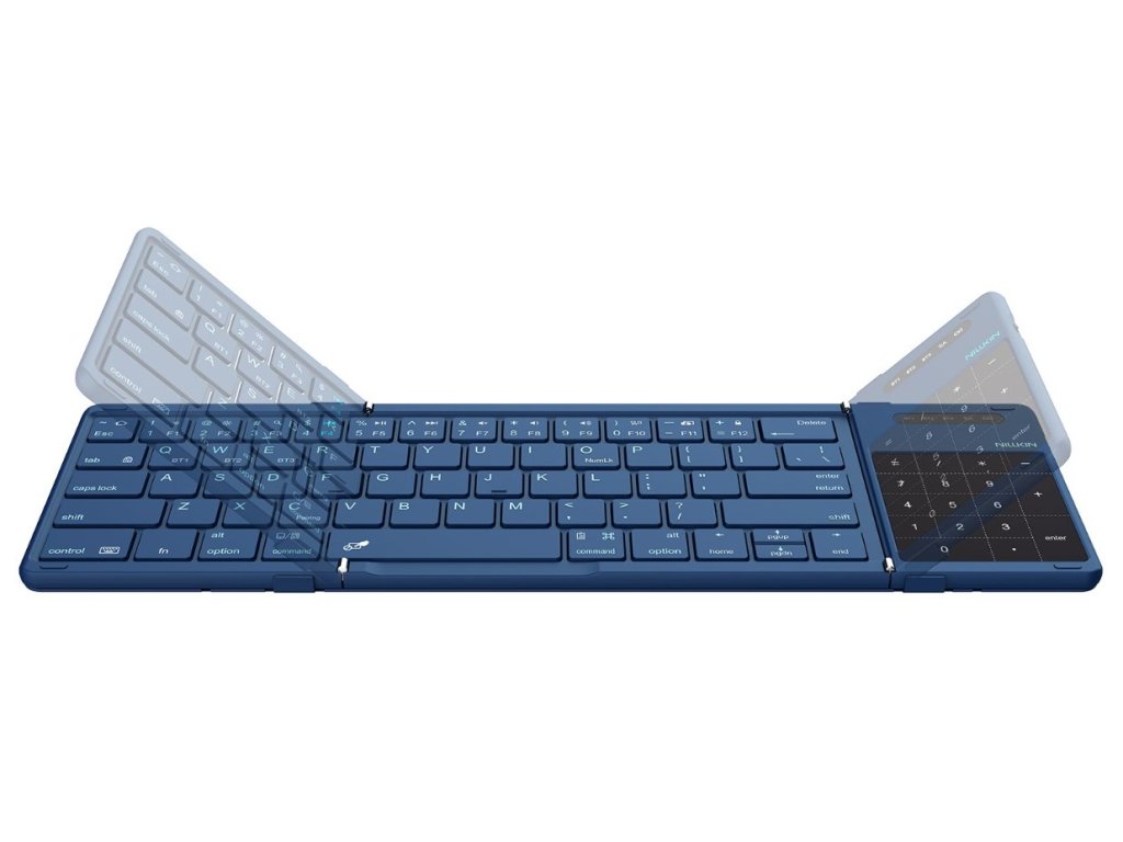 Nillkin Cube Kapesní Klávesnice Modrá Maximální přenosnost. Plnohodnotná funkčnost. Skládací Bluetooth klávesnice Cube Pocket se snadno vejde do tašky, batohu i větší kapsy. V rozloženém stavu nabídne plnohodnotné rozložení kláves a vysoký komfort psaní. Specifikace: Dosah bluetooth: Až 10 metrů Nabíjení přes: USB-C (5V / 1A) Touchpad: Ano Numerický blok: Ano Kompatibilní OS: Windows, iOS, Android, macOS Baterie: 140mAh (až 10 hodin výdržě) Rozměry složené klávesnice: 182 x 108 x 16mm Rozměry otevřené klávesnice: 342 x 108 x 9,5mm Hmotnost: 238g Obsah balení: , *bezdrátová skládací Bluetooth klávesnice *USB-C nabíjecí kabel *ochranné pouzdro *uživatelský manuál Záruka: ,2 rokyDodatočné parametre