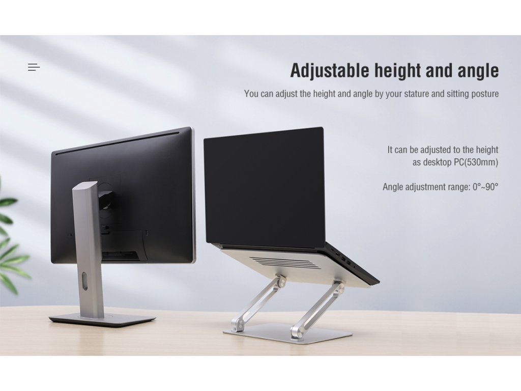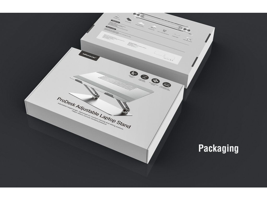 Popis produktu: Nillkin ProDesk je nastavitelný stojánek pod notebook, který vyniká svým luxusním vzhledem, kvalitním zpracováním a lze ho použít s notebooky do velikosti až 17''. Pomocí stojánku si umístíte svůj notebook na stůl do libovolné pozice. Ať už používáte samotný notebook nebo slouží jako druhý monitor, tento stojánek vám umožní nastavit přesně tu pozici, kterou potřebujete. Nilkin ProDesk je dimenzovaný až do hmotnosti 12,5kg, takže se nemusíte bát ani o ten nejtěžší notebook, který bude držet spolehlivě na svém místě jak dlouho budete potřebovat. V podstavci jsou umístěné větrací otvory pro maximálně efektivní chlazení notebooku. Stojánek je vyroben z kvalitního hliníku se spolehlivě dimenzovanými klouby a pískovaným povrchem. Části pod notebookem a základna jsou vybaveny protiskluzovou silikonovou podložkou, aby stojánek i notebook držel spolehlivě na svém místě. Vlastnosti - vyrobeni z vysoce kvalitního hliníku - nosnost až 12,5kg - protiskluzová silikonová podložka - pevné klouby zamezující chvění - pískovaný povrch - skladný pro přepravu - pro notebooky až do 17 palců - rozměr základny 200 x 237mm - rozměr podstavce pro notebook 295 x 215mmDodatočné parametre