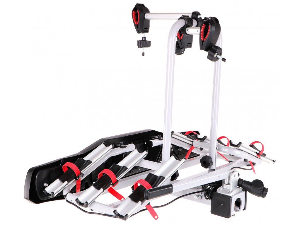 Spoľahlivý nosič bicyklov na upevnenie na guľu ťažného zariadenia BIKE 3 pre 3 kolesá. Nosič je vyrobený z ocele a hliníka. Nosič má jednoduchý upevňovací systém, s penovým sklom na pripevnenie ku kufru, s plne osvetleným panelom a míťou na evidenčné číslo vozidla.