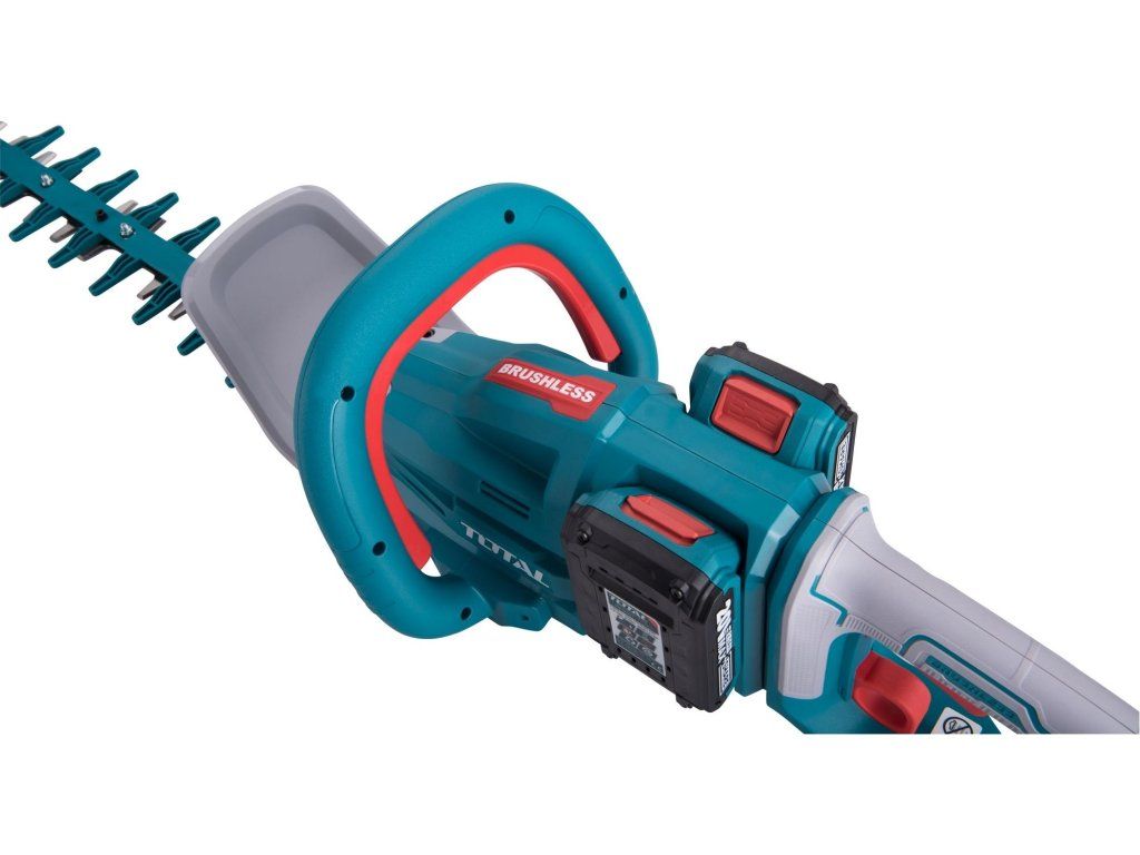 Tyto akumulátorové nůžky jsou určeny ke stříhání živého plotu, keřů, křovin a nově vzrostlých větví v domácích zahradách. Jedná se o novinku společnosti Total. Nůžky jsou napájeny dvěma bateriemi 2000mAh, čímž docílí vyššího výkonu a delší pracovní doby nůžek. Nůžky v sobě mají integrovány 3 pojistky proti spuštění, jsou vybaveny nejmodernějším bezuhlíkovým motorem a pogumovanou rukojetí, která se osvědčila jako protiskluzová. Tyto nůžky jsou součástí populární řady P20S, tedy řady 180 výrobků na jednu baterii. Pokud tedy již vlastníte nějaký bateriový výrobek z řady Total 20V, nemusíte dokupovat k tomuto výrobku baterii a nabíječku. Můžete ji použít z již zakoupeného výrobku. Nepřítomnost napájecího kabelu poskytuje svobodu a komfort při práci a manipulaci s nářadím. Nářadí lze tak s výhodou použít pro práci v místech, kde není možné použít elektrické nářadí s napájecím kabelem z důvodu nedostupnosti distribuční elektrické sítě.Technické parametry: