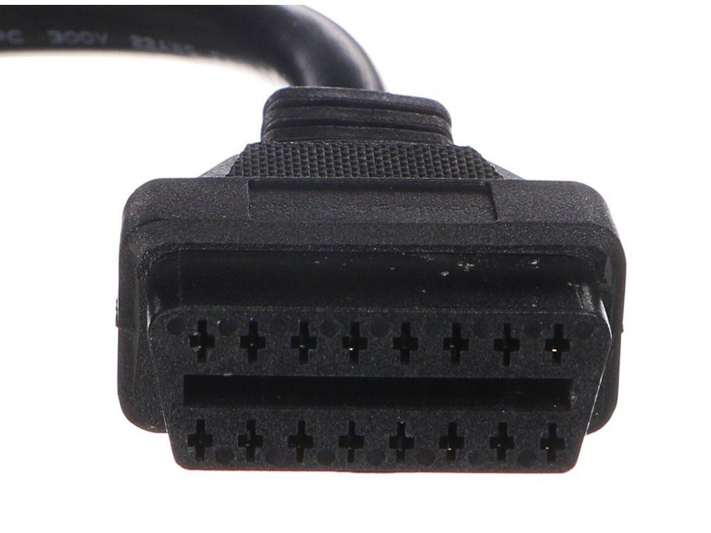 - Propojení mezi 16-pinovou zásuvkou a OBD-II konektorem.