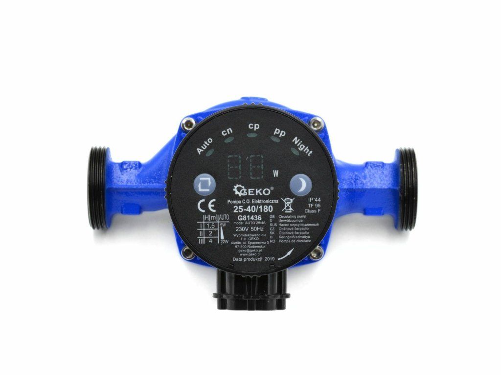 Elektronické energeticky úsporné oběhové čerpadlo pro instalace ústředního topení 25-40 / 180 (AUTO 25 / 4A). Určeno k oběhu teplé vody. Energeticky úsporné čerpadlo GEKO umožňuje automatické řízení tlakového rozdílu regulováním otáček a jejich přizpůsobením aktuální poptávce.