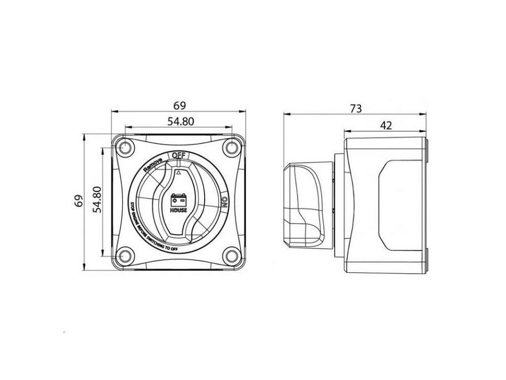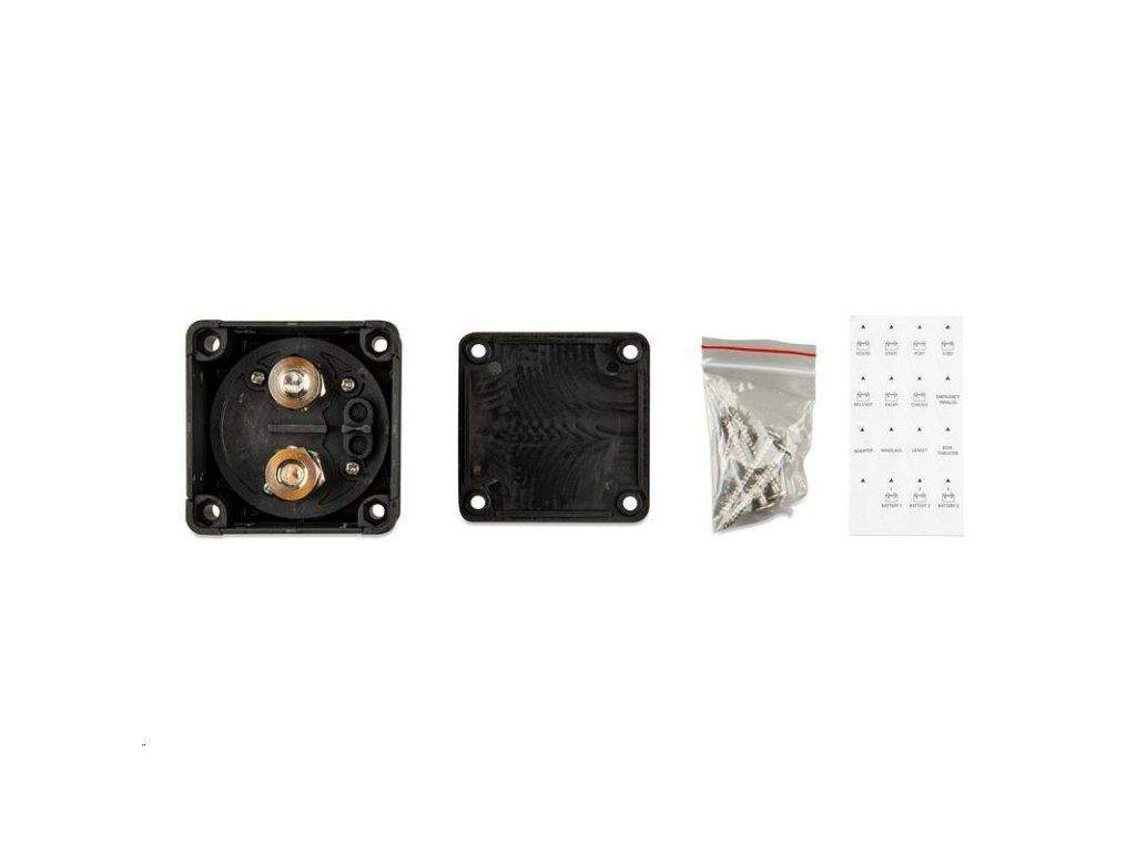 Batériový odpojovač možno namontovať na povrch alebo panel, čo umožňuje flexibilitu pri inštalácii. Je vybavený 4 ľahko odnímateľnými bočnými panelmi na prístup ku káblom. Dodáva sa so 16 rôznymi nálepkami na prispôsobenie batériového spínača.
