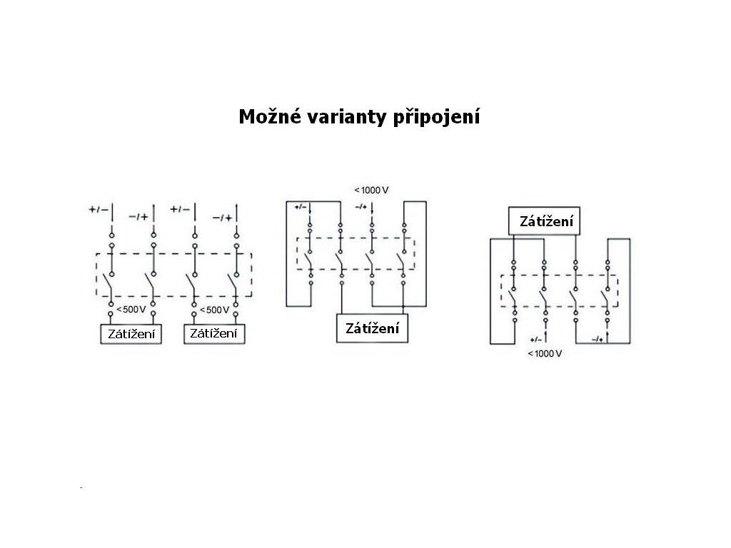• Počet pólů: 2 (dvě oddělené větve pro odpojení obou vodičů stejnosměrného proudu).