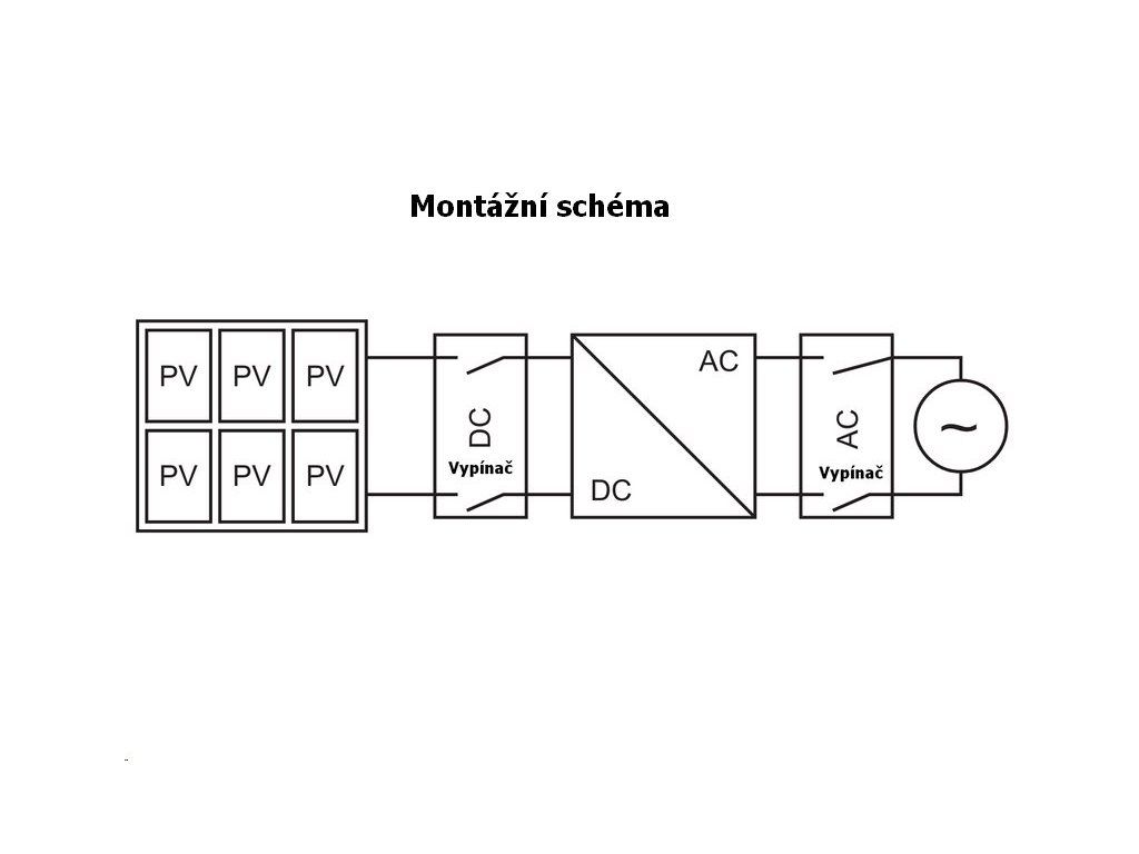 • Dvoupólový odpojovač – zajišťuje bezpečné odpojení obou větví DC obvodu, čímž poskytuje vyšší ochranu zařízení.