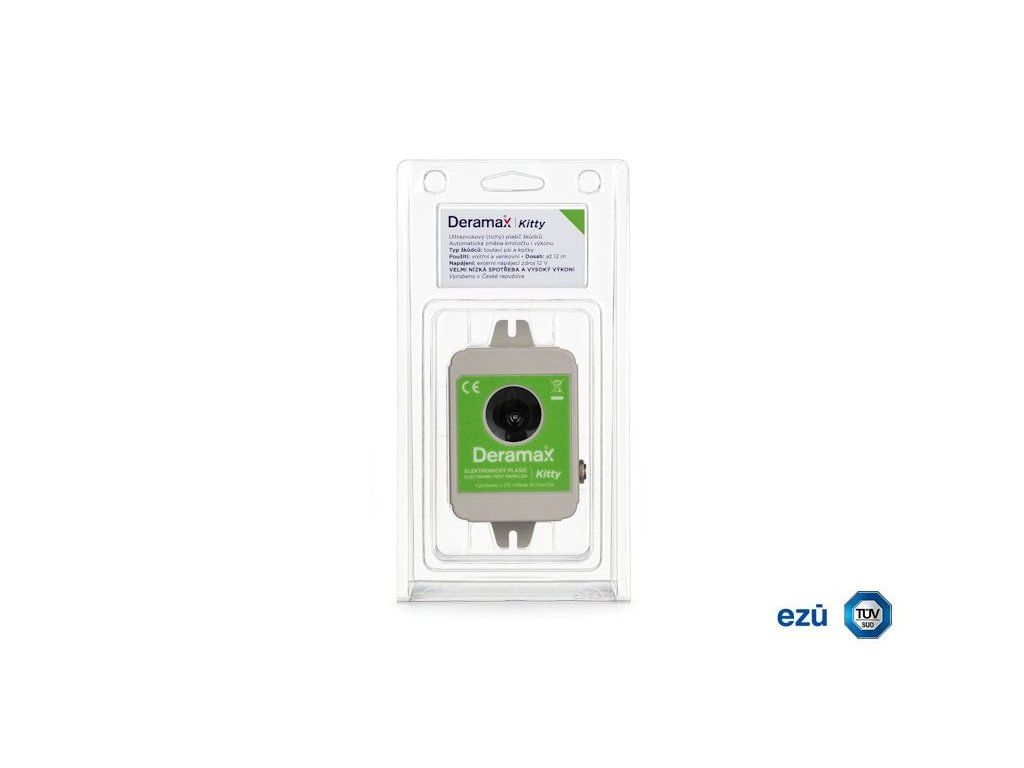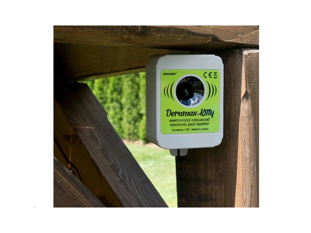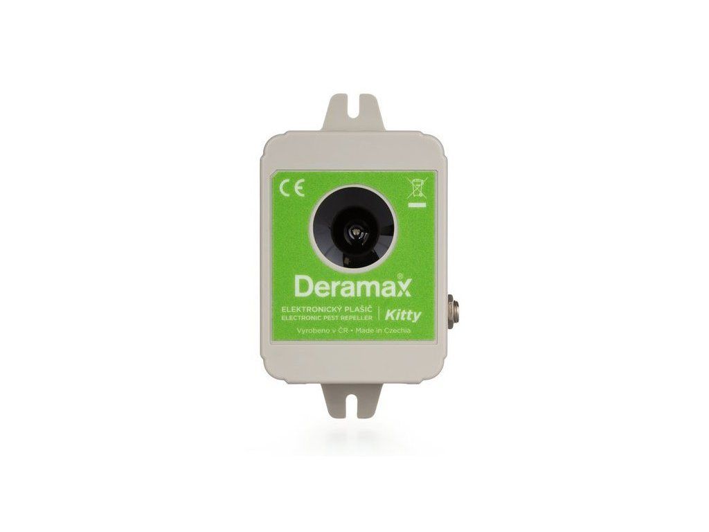 Ultrazvukový plašič (odpudzovač) Deramax-Kitty je elektronické zariadenie, ktoré sa používa na ochranu vonkajších priestorov pred túlavými mačkami a psami. Škodcovia sú trvalo obťažovaní ultrazvukovými signálmi plašiča a v krátkom čase opustia chránený priestor. Deramax-Kitty pracuje vo frekvenčnom rozsahu, ktorý je mimo rozsahu počuteľnosti pre ľudí, takže neruší ani neobťažuje svoje okolie nepríjemným hlukom. Prevádzka zariadenia je úplne ekologická, bez použitia chemických látok.