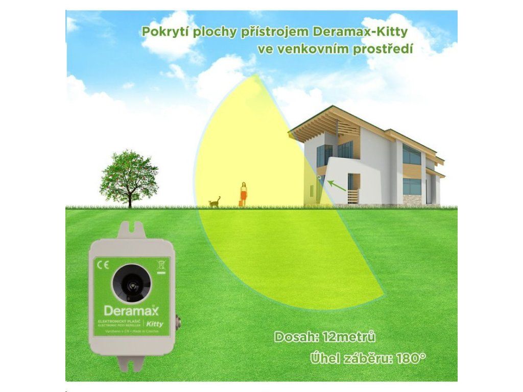 Potrebujete odradiť nepozvané túlavé mačky a psy od vášho domu? Existuje účinný pomocník a tým je DERAMAX KITTY - bezpečný a vysokoúčinný odpudzovač túlavých mačiek a psov. Automatická zmena frekvencie a výkonu. Český výrobok.