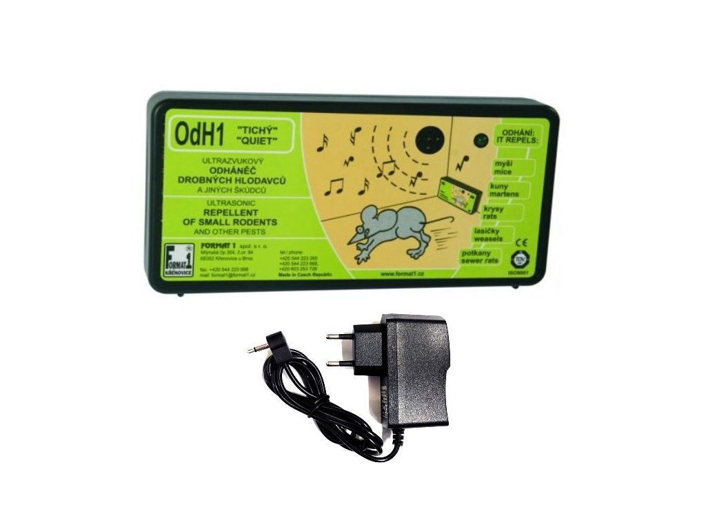 Odpudzovač myší a kún FORMAT OdH1 tichý, sada plašič + adaptérUltrazvukový elektronický odháňač myší, kún, potkanov, lasičiek a potkanov. Ide o rýdzo český produkt s dlhoročnou tradíciou na trhu (od r. 1991)
