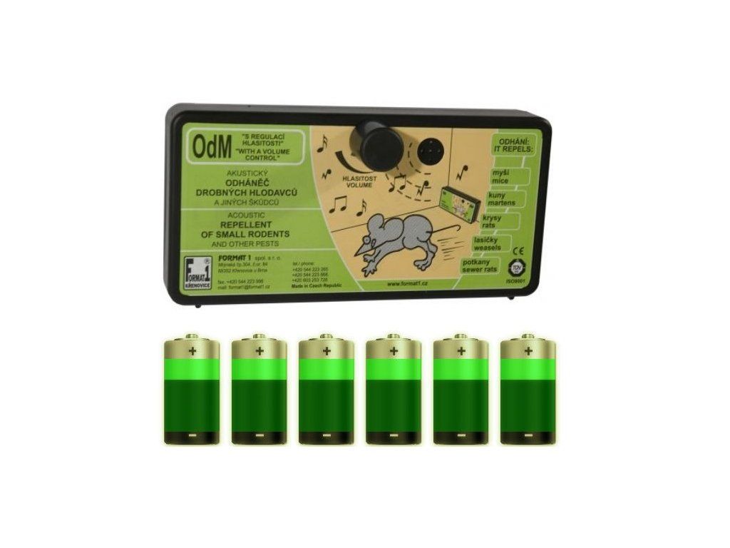 Odpudzovač myší a kún FORMAT OdM regulovateľný, sada plašič + batéria