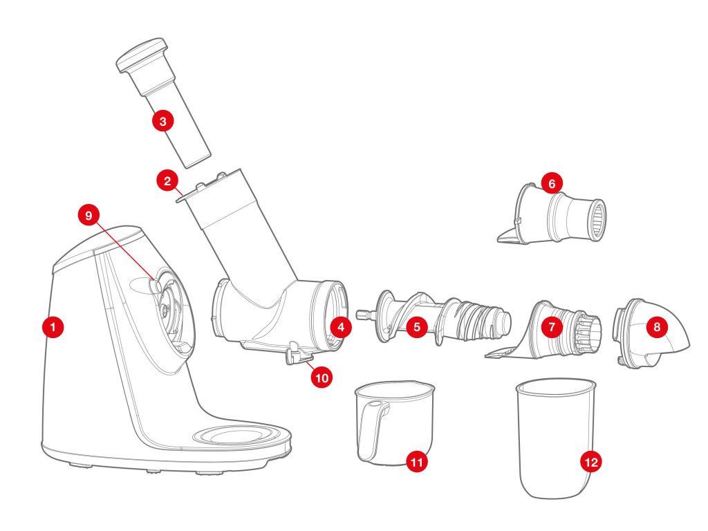Odšťavovač G21 Gracioso k vám nepríde sám, vezme si so sebou pomocníkov. Kvalitná plastová nádoba s úchopom je uspôsobená pre zachytenie šťavy pod výpusťou. Na odšťavenú dreň sme vám pribalili nádobku z odolného plastu. Samozrejme nechýba ani praktické vtláčadlo.